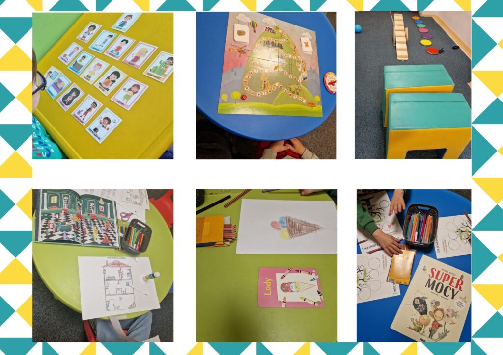 Zajęcia rozwijające kompetencje emocjonalno-społeczne, podczas których dzieci uczą się, jak nazywać i rozumieć swoje emocje, rozpoznawać je w ciele oraz budować pewność siebie, rozwiązywanie konfliktów, skuteczną komunikację oraz wyznaczanie i szanowanie własnych granic, a także granic innych osób. Szczególną wagę przykładamy do rozwijania umiejętności współpracy i współdziałania, które są kluczowe dla życia w społeczności oraz budowania zdrowych relacji z rówieśnikami.
